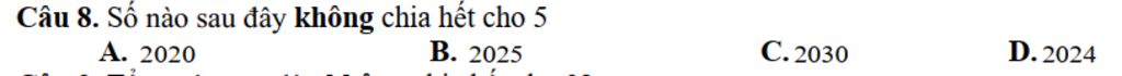 nên số `2024` không chai hết cho `5` vì có chữ số tận cùng là `4`
