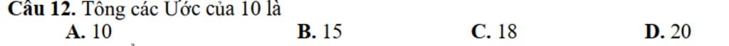 `->` Tổng các ước của `10` là `10 + 5 + 2 + 1 = 18`