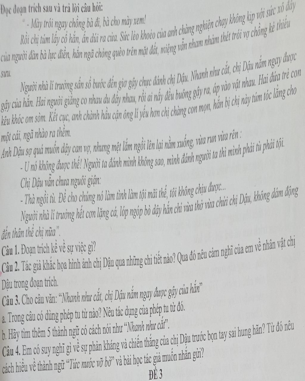 Đọc đoạn trích sau và trả lời câu hỏi: