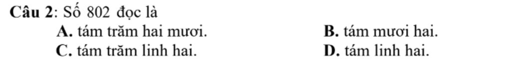 Số '' `802` '' được đọc là ''tám trăm linh hai''