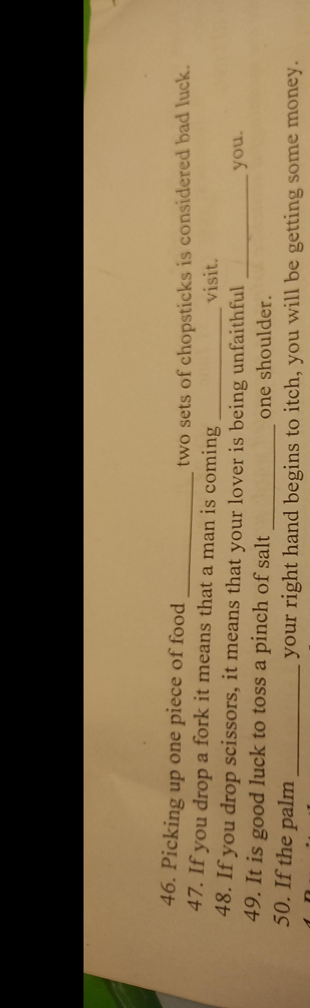47. If you drop a fork it means that a man is coming