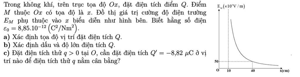 Anh nghĩ khi `x > 10` thì `E` dương nên `vecE` cùng chiều với trục Ox `to` Hướng ra ra `Q to` Điện tích dương nhé