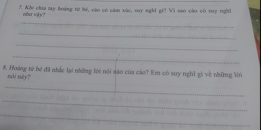 Câu 7: Khi chia tay hoàng tử bé, cáo có cảm xúc, suy nghĩ gì? Vì sao cáo có suy nghĩ như vậy?