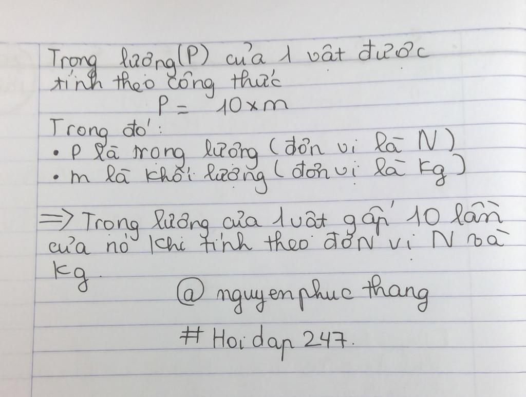 trọng lượng bằng 10 lần khối lượng mà 1kg = 10 N là sao bn