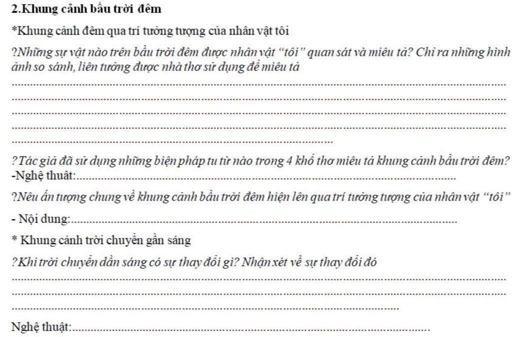 ?Những sự vật nào trên bầu trời đêm được nhân vật “tôi” quan sát và miêu tả? Chỉ ra những hình