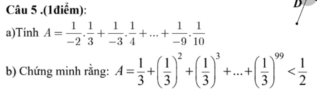 `b)A=1/3+(1/3)^2+(1/3)^3+....+(1/3)^99`
