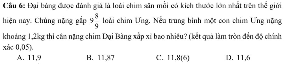 Nếu `1` con chim ưng nặng 1,2 cân thì con đại bàng nặng