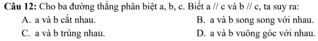 Nếu có `3` đường thẳng phân biệt `a,b,c` mà `a //// c` và `b //// c` thì: