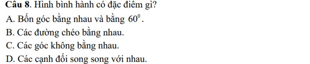 `bb C:`Sai vì `2` góc đối bằng nhau