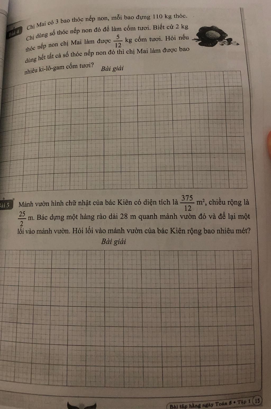 Chị Mai làm được số kg cốm tươi là: