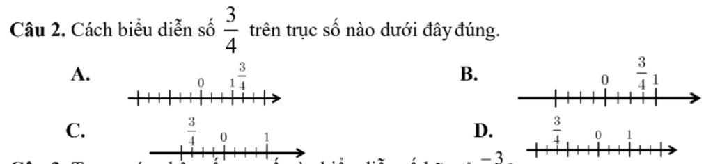 `bb C:`Sai vì sau số `0` biểu diễn số hữu tỉ âm,`3/4` phải nằm ở trước số `1`
