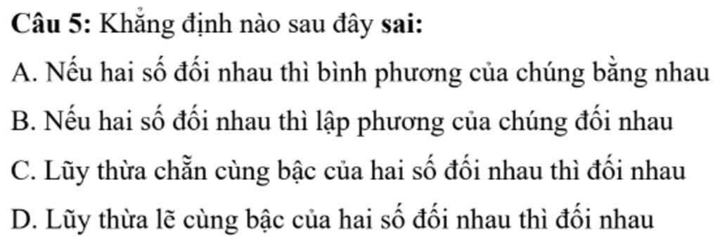 `bb C:`Sai vì lũy thừa chẵn cùng bậc của hai số đối nhau thì bằng nhau