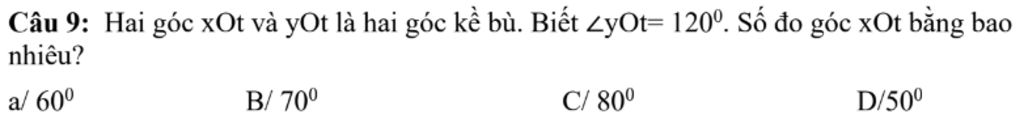 Ta có : `\hat{xOt} + \hat{yOt} = 180^o` ( `2` góc kề bù )