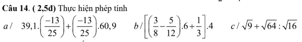 `a) 39,1 . (-13/25) + (-13/25) . 60,9`