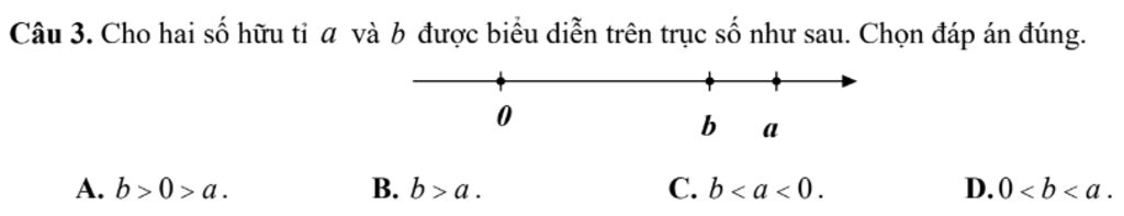 Vì `b` nằm sau điểm `a` nên `b < a`