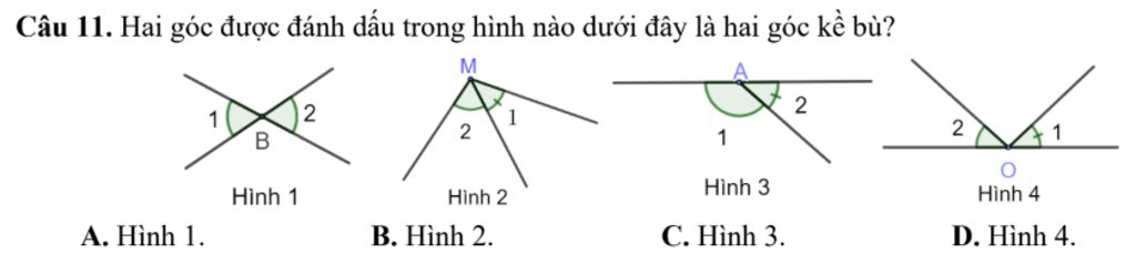 `=>` Hình `3` là hình có hai góc đánh dấu được gọi là hai góc kề bù