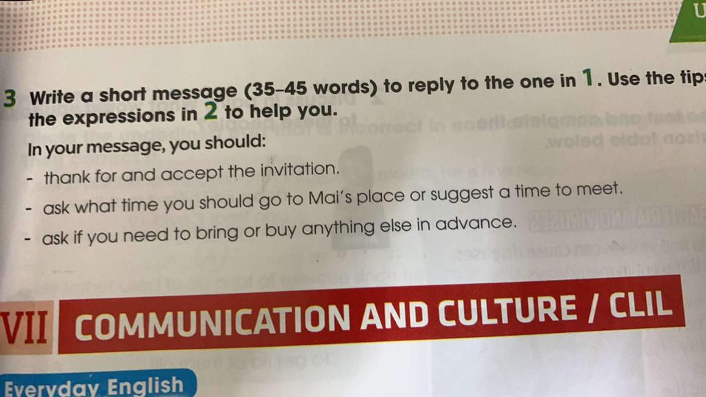3 Write a short message (35-45 words) to reply to the one in 1. Use the tips