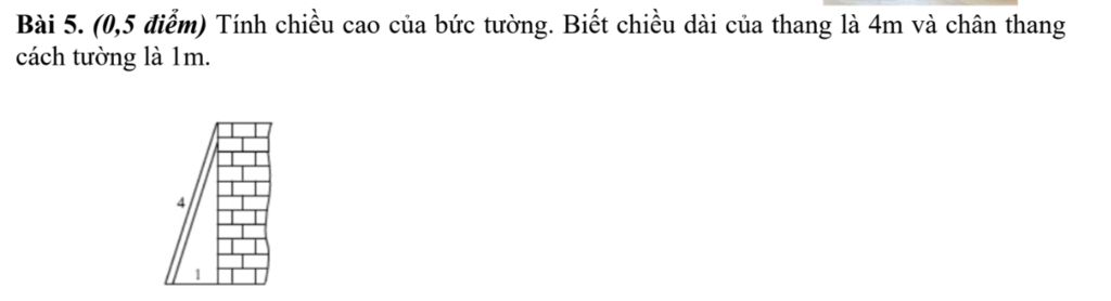 Chiều cao bức tường là `sqrt{4^2-1^2}=sqrt{15}(m)`