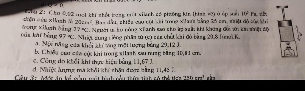 Nhiệt lượng mà khối khí nhận được là `Q (J)`