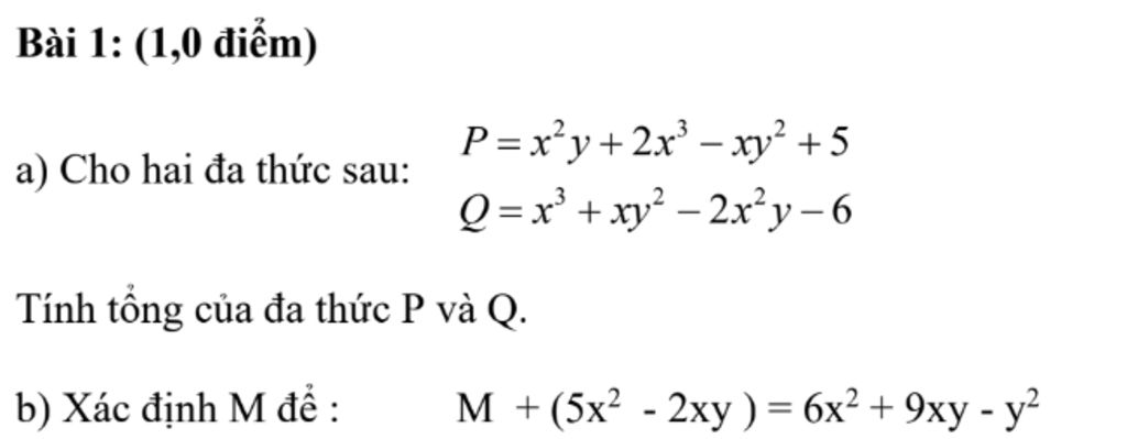 Vậy `P + Q = -x^2y + 3x^3 - 1`