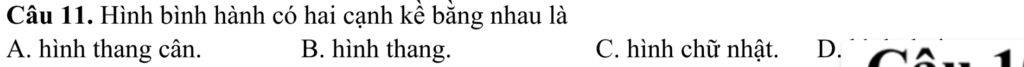 Câu 11. Hình bình hành có hai cạnh kề bằng nhau là