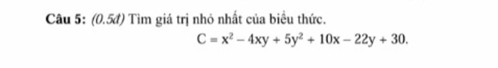 `=> C = ( x - 2y + 5 )^2 + ( y - 1 )^2 + 4 >= 4 AA x ; y`