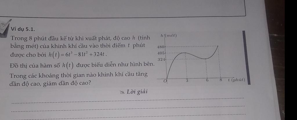 bằng mét) của khinh khí cầu vào thời điểm t phút
