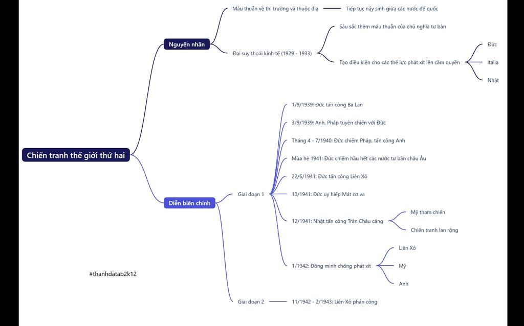 hãy vẽ cho tôi một sơ đồ tư duy ngắn gọn dễ hiểu về chiến tranh thế giới thứ hai