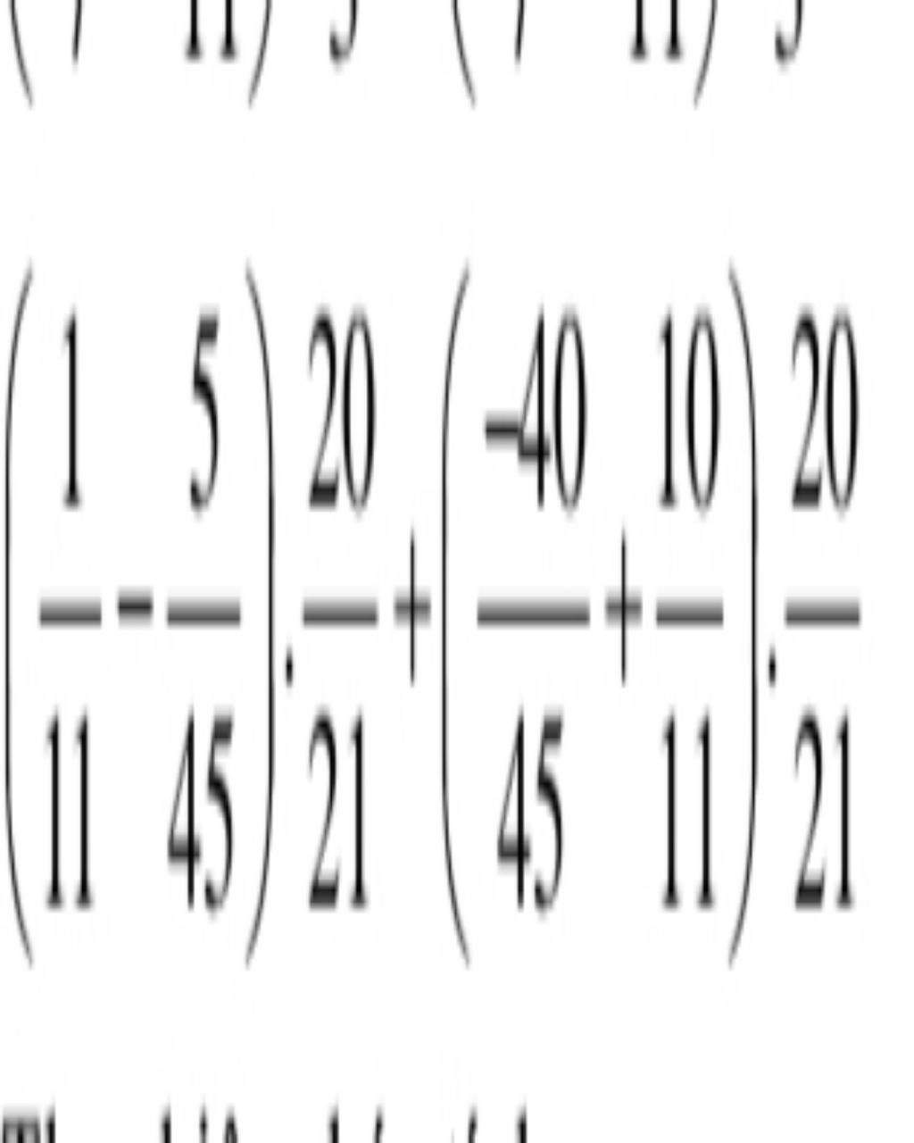 `(` `1/11` `-` `5/45` `)` `.` `20/21` `+` `(` `-40/45` `+` `10/11` `)` `.` `20/21`