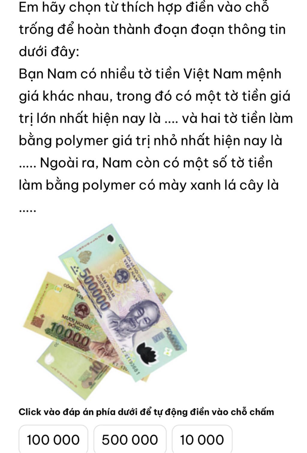 tờ tiền làm từ polymer có màu xanh lá cây là:100 000