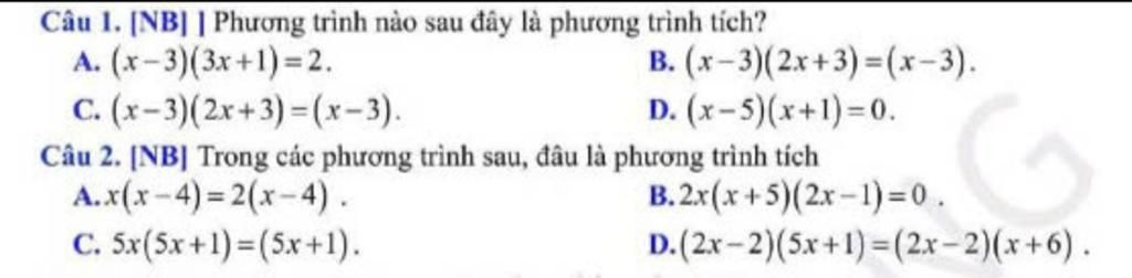 Phương trình tích là phương trình có dạng `A(x). B(x)=0`