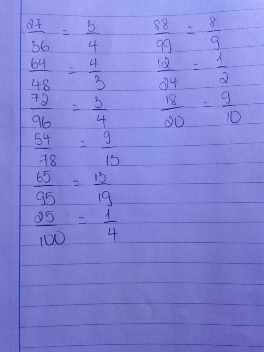 Phía trước dấu bằng là phân số đề bài cho. Còn phía sau dấu bằng là phân số đã rút gọn.