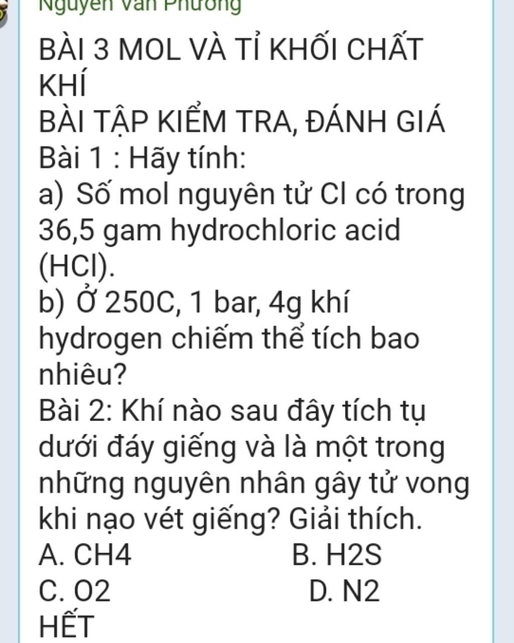 - Chọn B: H2S vì H2S nặng hơn không khí và là khí độc có thể gây ngạt thở.