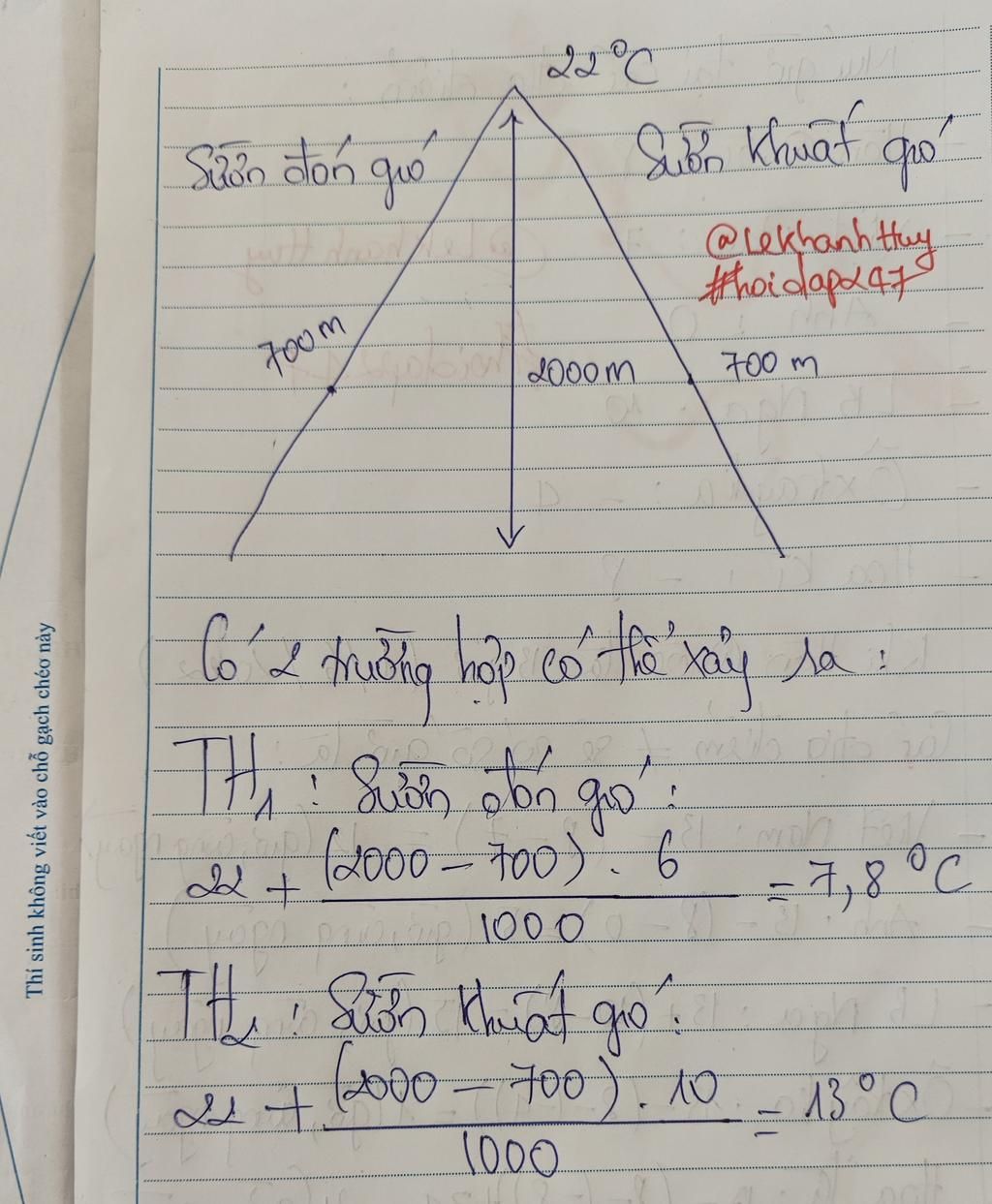 Câu 5. Tại độ cao 2000m trên dãy núi Phan xi păng có nhiệt độ là 22ºC, cùng thời điểm này nhiệt độ ở độ cao