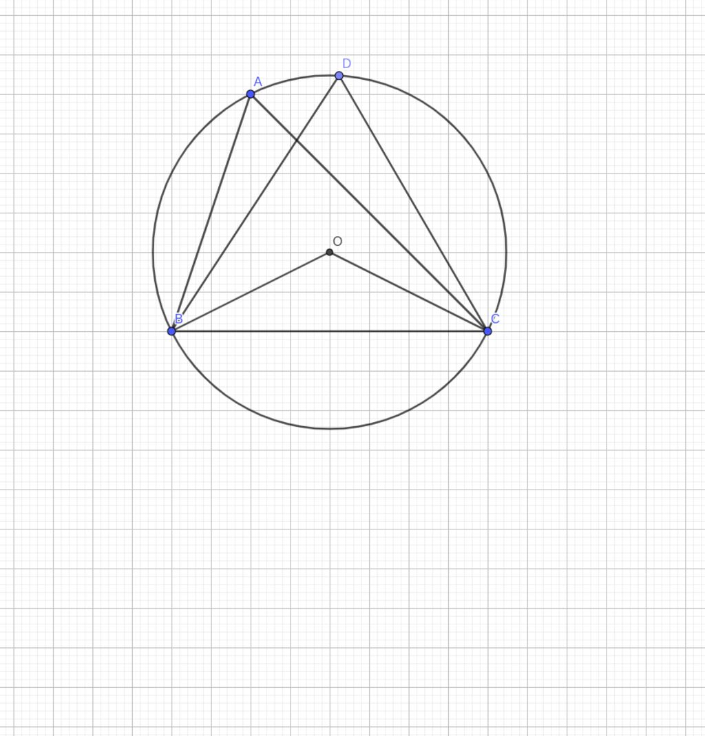$\to \widehat{BAC}=\dfrac12\widehat{BOC}$