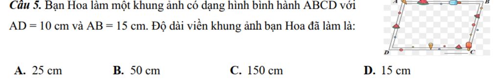 Độ dài viền khung ảnh bạn Hoa đã làm là `:`