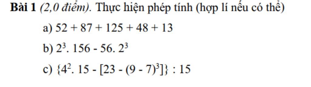 Bài 1 (2,0 điểm). Thực hiện phép tính (hợp lí nếu có thể)