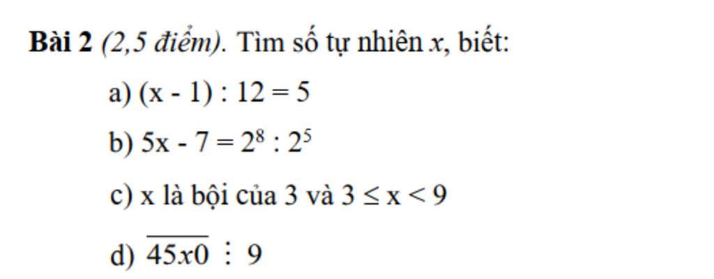 Bài 2 (2,5 điểm). Tìm số tự nhiên x, biết: