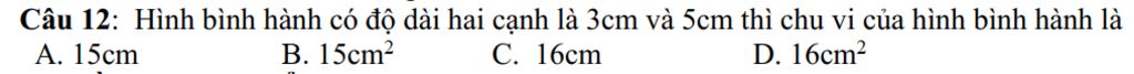 `2(3 + 5) = 2 . 8 =16` (`cm`)
