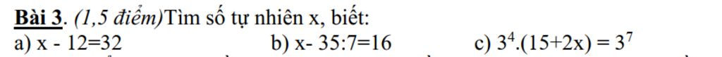 Bài 3. (1,5 điểm)Tìm số tự nhiên x, biết: