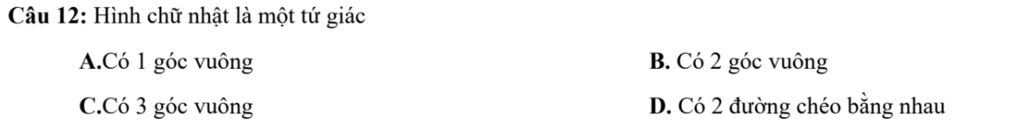 Câu 12: Hình chữ nhật là một tứ giác là: