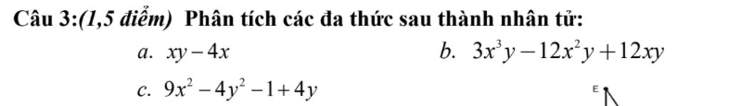 Câu 3:(1,5 điểm) Phân tích các đa thức sau thành nhân tử: