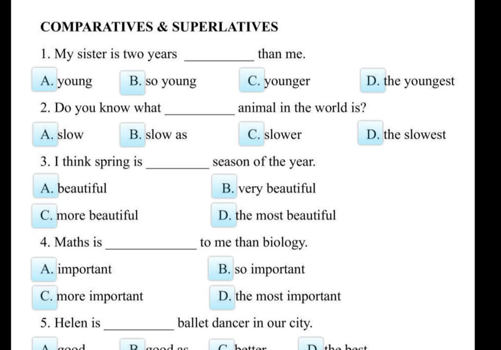 - Tận cùng là y → đổi -y thành - i và thêm ER / EST