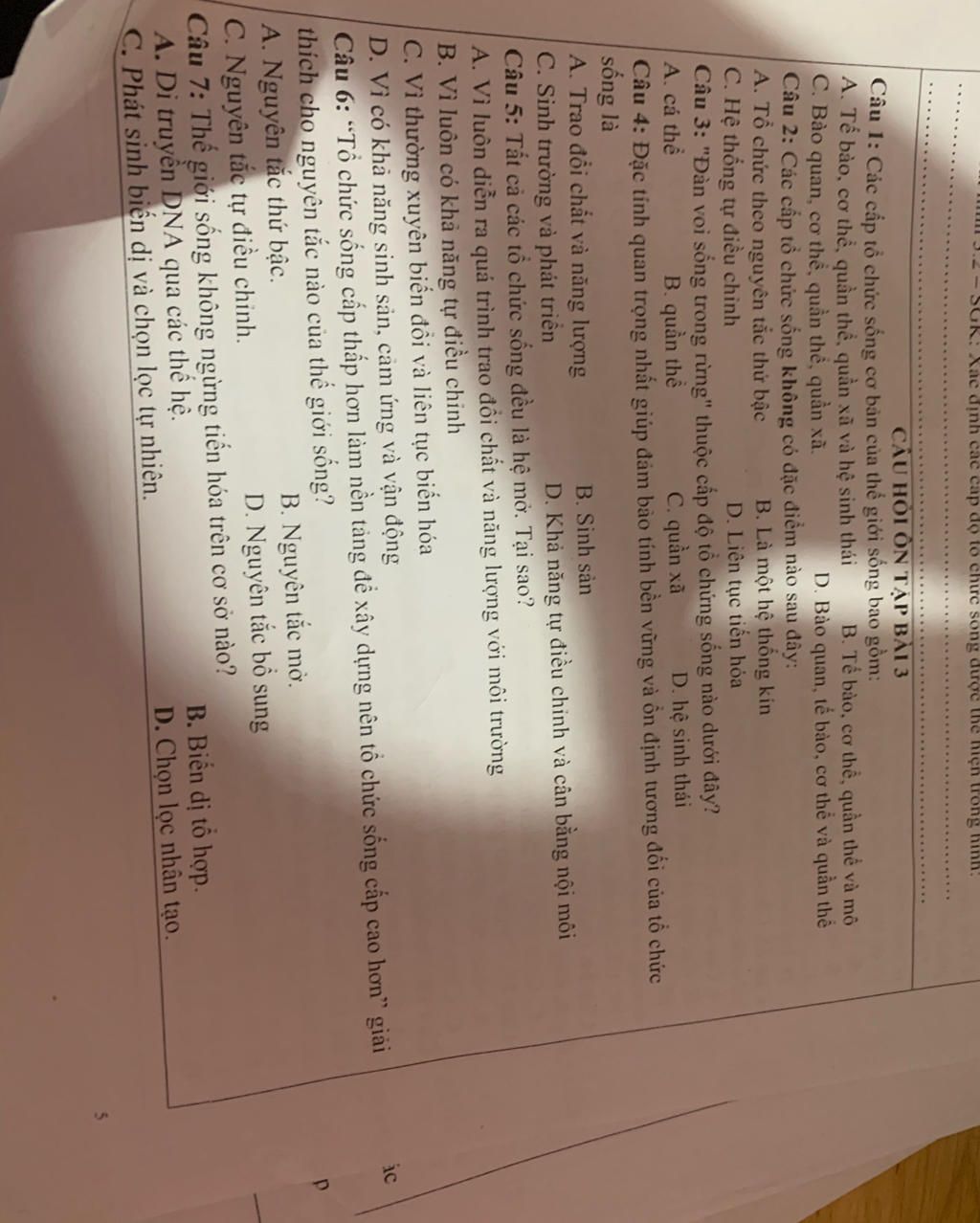 Câu 1: Các cấp tổ chức sống cơ bản của thế giới sống bao gồm: