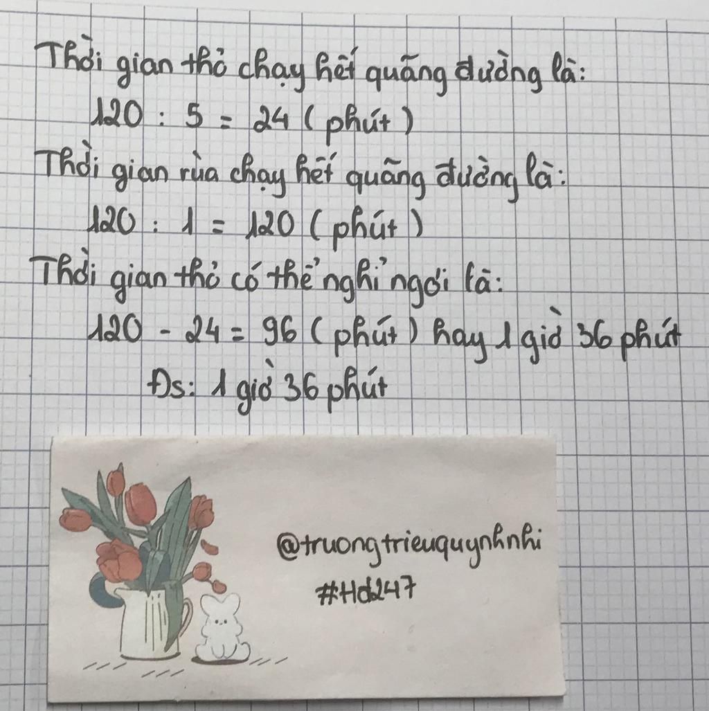 vận tốc 5m/phút còn rùa chạy với vận tốc 1m/phút. Sau khi đi được nửa đường, thỏ quyết