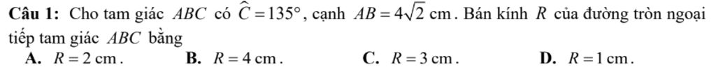 `-> R = (AB)/(2.SinC) = (4\sqrt{2})/(2.Sin135^o) = 4cm`