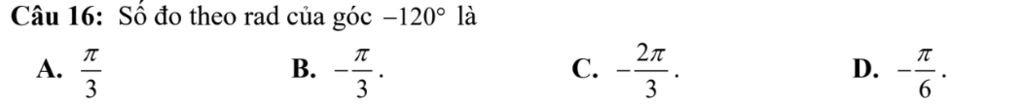 `-120^0 = ((-120^0). \pi)/(180^0) = (-2)/3 \pi`