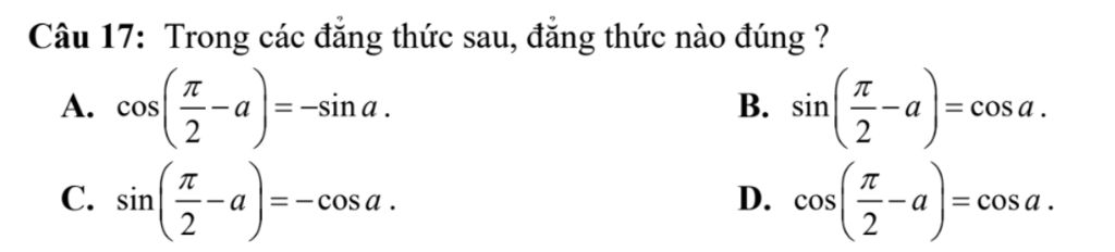 Câu 17: Trong các đẳng thức sau, đẳng thức nào đúng ?