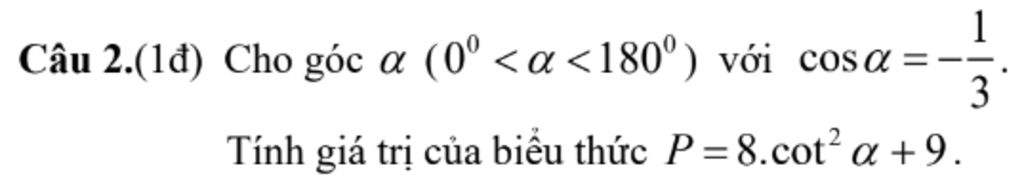 Có: `cot\alpha=\frac{cos\alpha}{sin\alpha}`