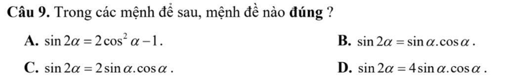 Câu 9. Trong các mệnh để sau, mệnh đề nào đúng ?